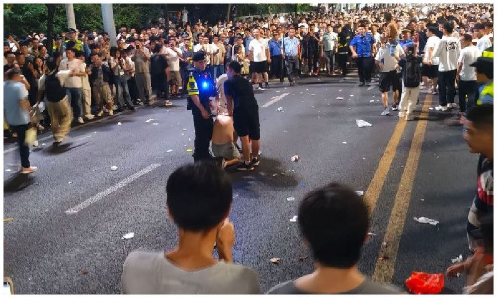 Nanchang Crowd Confuses Fan for Knife — Man Kicked Down and Taken Away