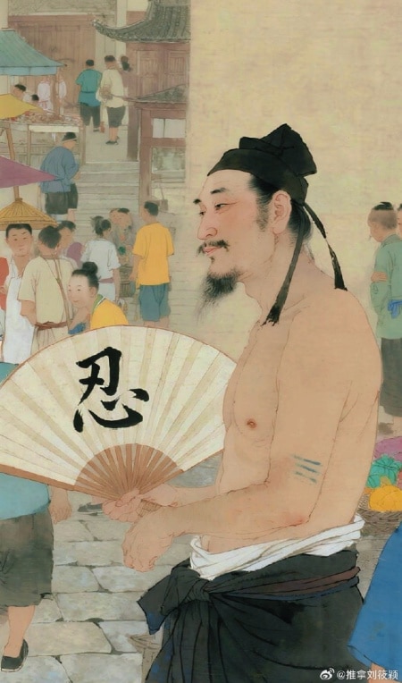 Image posted on Weibo in support of the “fan-waving brother.” The character on the fan says “tolerate.”