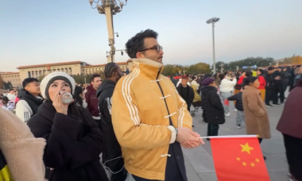 Livestreamer Hasan Piker during his visit to Tiananmen Square flag-rising ceremony.