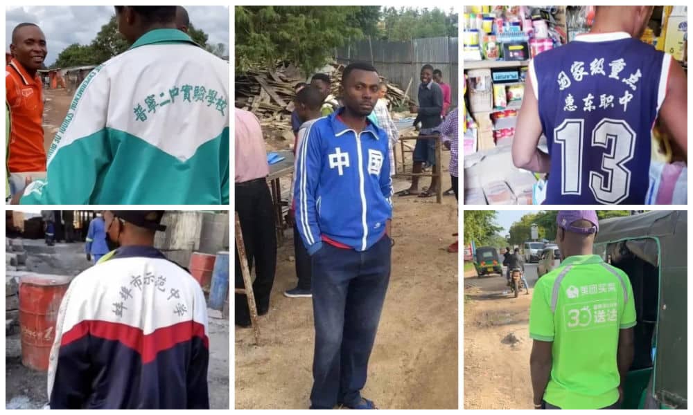 Chinese social media users posting images of school/work uniforms from China worn by Africans.