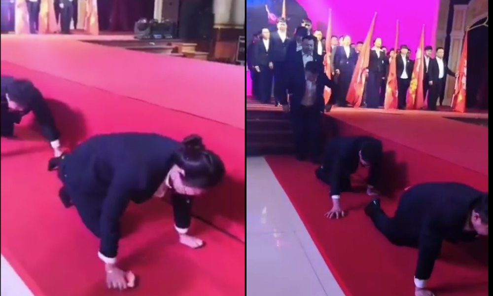 Employees crawling on the ground during annual business dinner: "Is this really the year 2020?"